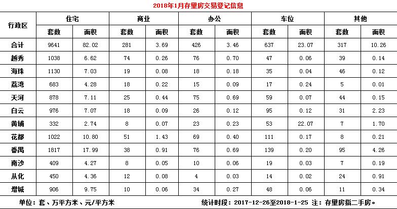 2018年1月份存量房交易登记信息