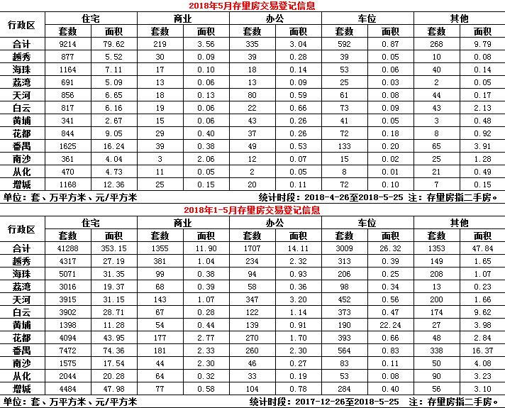 2018年5月份存量房交易登记信息