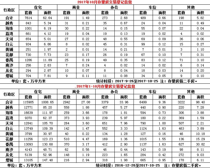 2017年10月份存量房交易登记信息