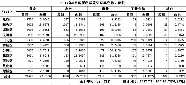 2017年8月房屋租赁登记备案信息
