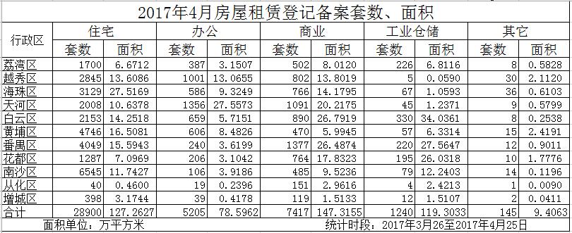2017年4月房屋租赁登记备案信息