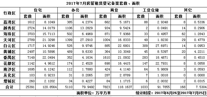 2017年7月房屋租赁登记备案信息