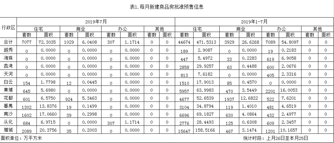 2019年7月新建商品房批准预售信息