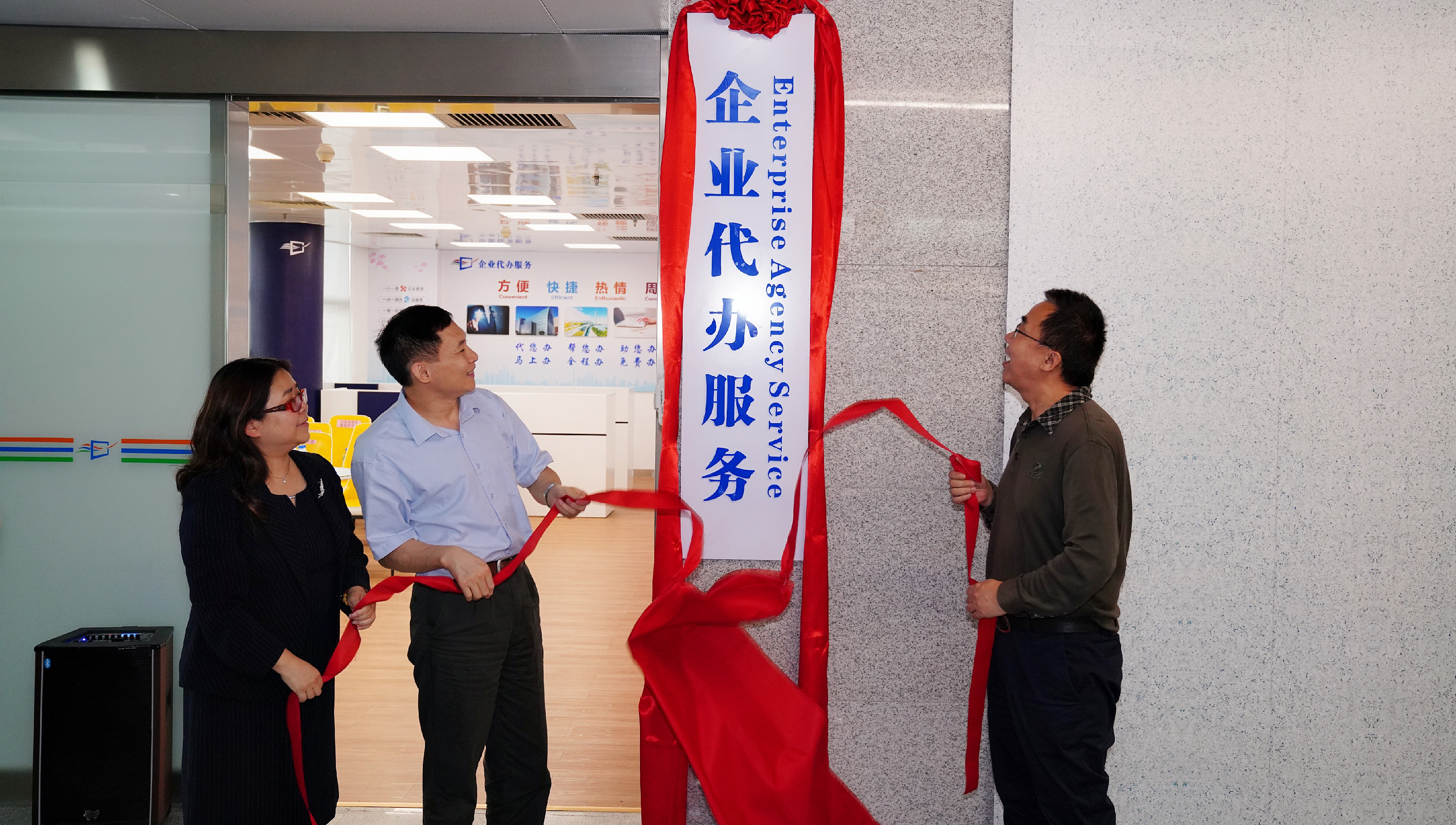 4月10日,市政务服务数据管理局企业代办服务室举行揭牌启用仪式。市政务服务数据管理局党组书记、局长张文涛,新利-新利18luck 副局长齐怀恩,市规划和自然资源局总经济师邱琳共同为企业代办服务室揭牌。随后与会领导参观了企业代办服务室,观看了企业代办服务介绍视频,并与广州市政务服务中心琶洲分中心进行市区两级视频连线服务展示。