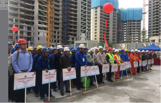2016年12月30日上午,由市住房城乡建设委和市总工会联合主办、市建设宣教劳保中心具体承办的广州市首届建筑工匠技能擂台赛(以下简称:擂台赛)在广州市荔湾区鹤洞路157号中国建筑第四工程局“珠江金茂府工程项目部”顺利开幕。市住房城乡建设委副主任李朝晖代表擂台赛组委会简要介绍了本次比赛的筹备情况,市总工会副主席李德球宣读了市人大常委会副主任、市总工会主席、省总工会副主席赵小穗的贺信,市政府副秘书长张晓波出席了开幕式并讲话。来自各区建设局以及中建四局、省建工集团、市建筑集团、金茂控股集团、市建筑业联合会等单位的120余名嘉宾受邀参加了擂台赛开幕式。